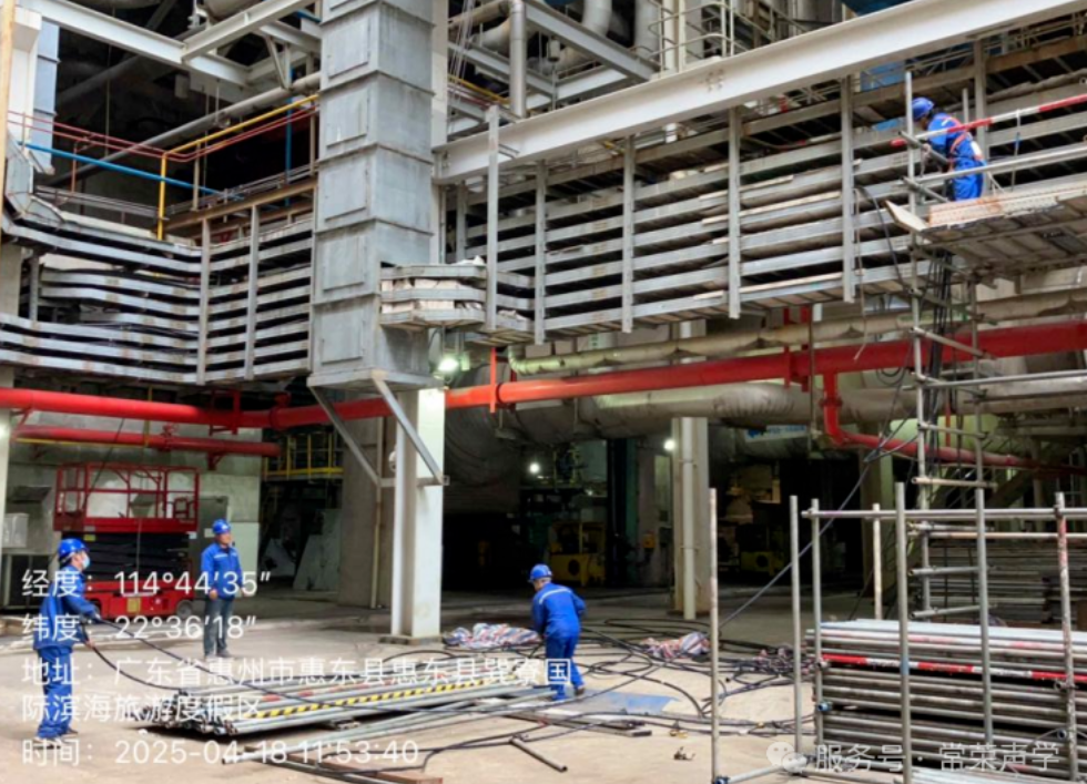 为保障锅炉长期安全高效的运行,减少水平烟道折焰角斜坡处积灰现象,电厂选择了南京常荣声学股份有限公司进行1号锅炉本体水平烟道区域声波吹灰器改造。2025年3月~4月,常荣声学在1号锅炉折焰角区域安装数台ENSG-K型声波吹灰器,用于清除折焰角斜坡处积灰,从而提高锅炉换热效率,保障机组运行的稳定性、安全性及经济性。